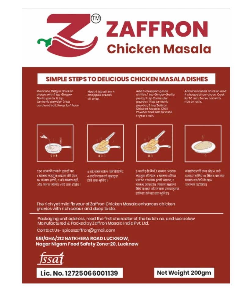 - Add 1–2 tablespoons of Zaffron Chicken Masala while marinating or cooking chicken.